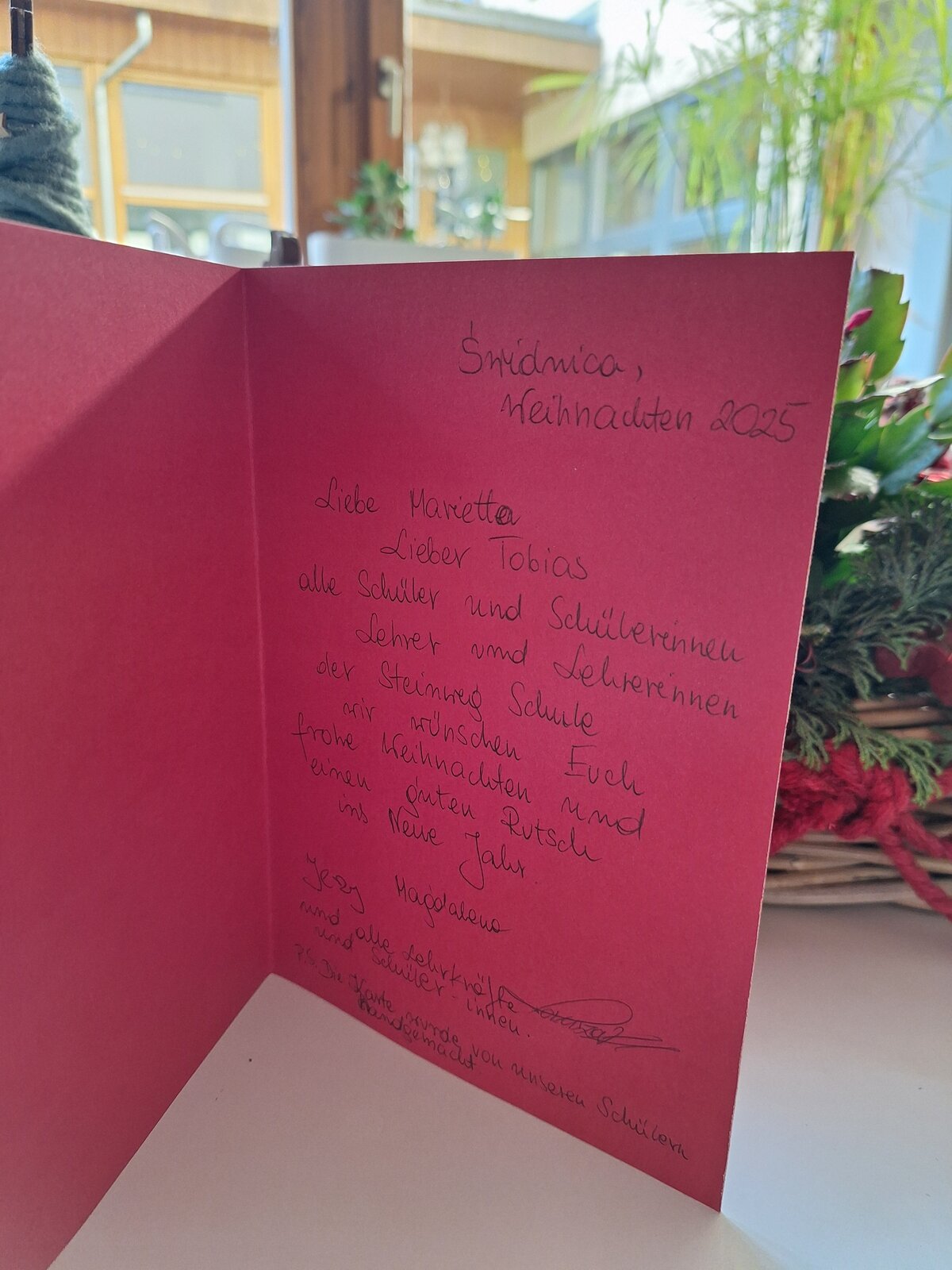 Diese freundlichen Weihnachtsgrüße unterstreichen, wie wertvoll und bereichernd internationale Schulpartnerschaften sind: Sie verbinden Menschen über Ländergrenzen hinweg, schaffen neue Perspektiven und stärken das gegenseitige Verständnis. Wir sind sehr dankbar für diese gelebte Freundschaft und die herzlichen Worte unserer Kolleg*innen in Świdnica.