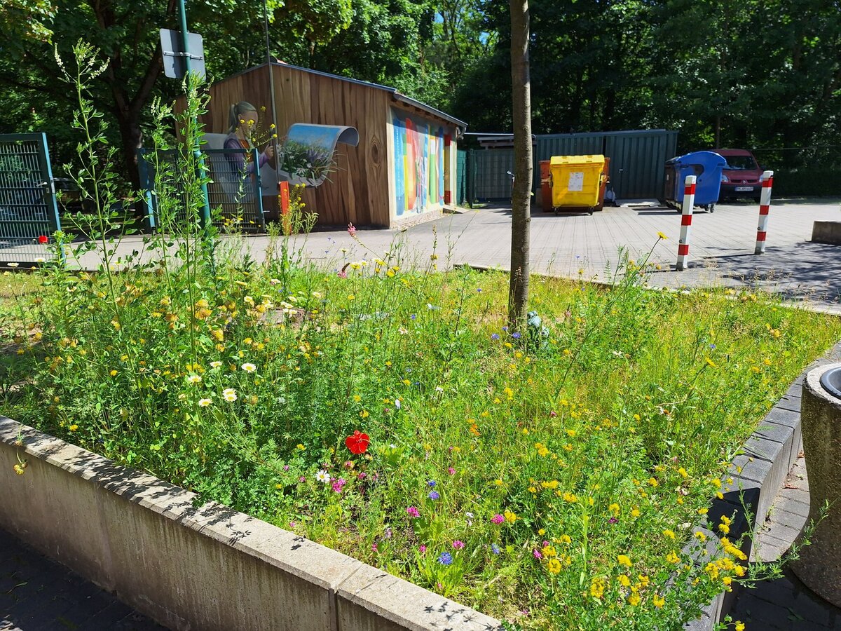 Alle an der Steinweg-Schule – Kinder, Lehrkräfte und Besucher – freuen sich jeden Tag über diese lebendige, blühende Oase direkt vor der Schultür.