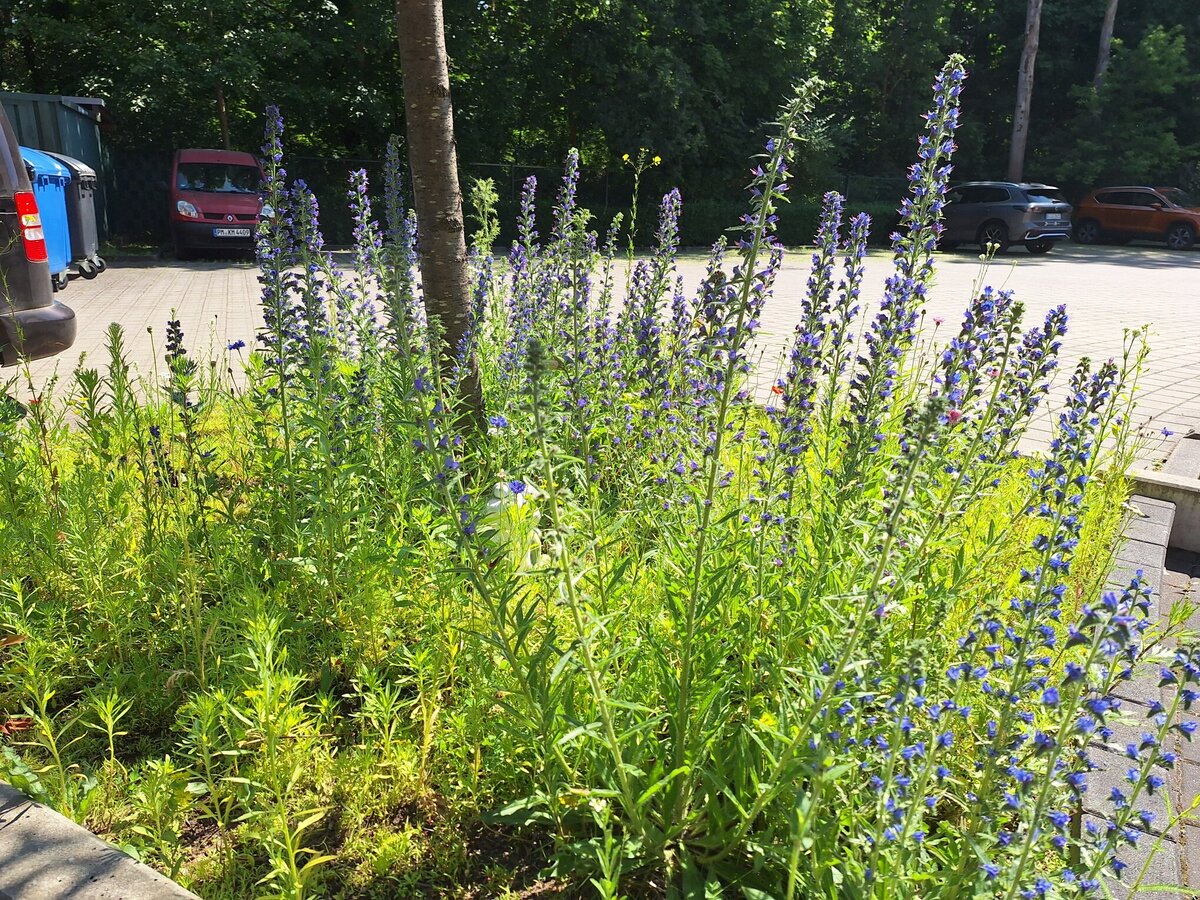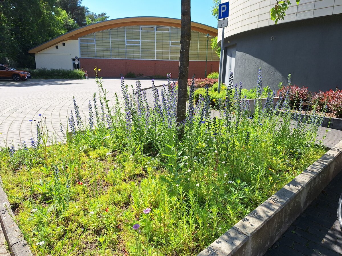 Bereits im zweiten Jahr in Folge zeigen sich die Beete am Schulparkplatz in voller Farbenpracht. Wo früher nur Gräser dominierten, summt und brummt es jetzt – ein Ort zum Staunen und Innehalten für Groß und Klein.