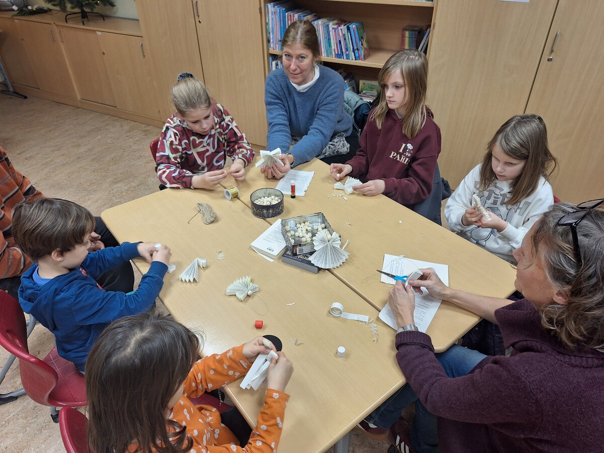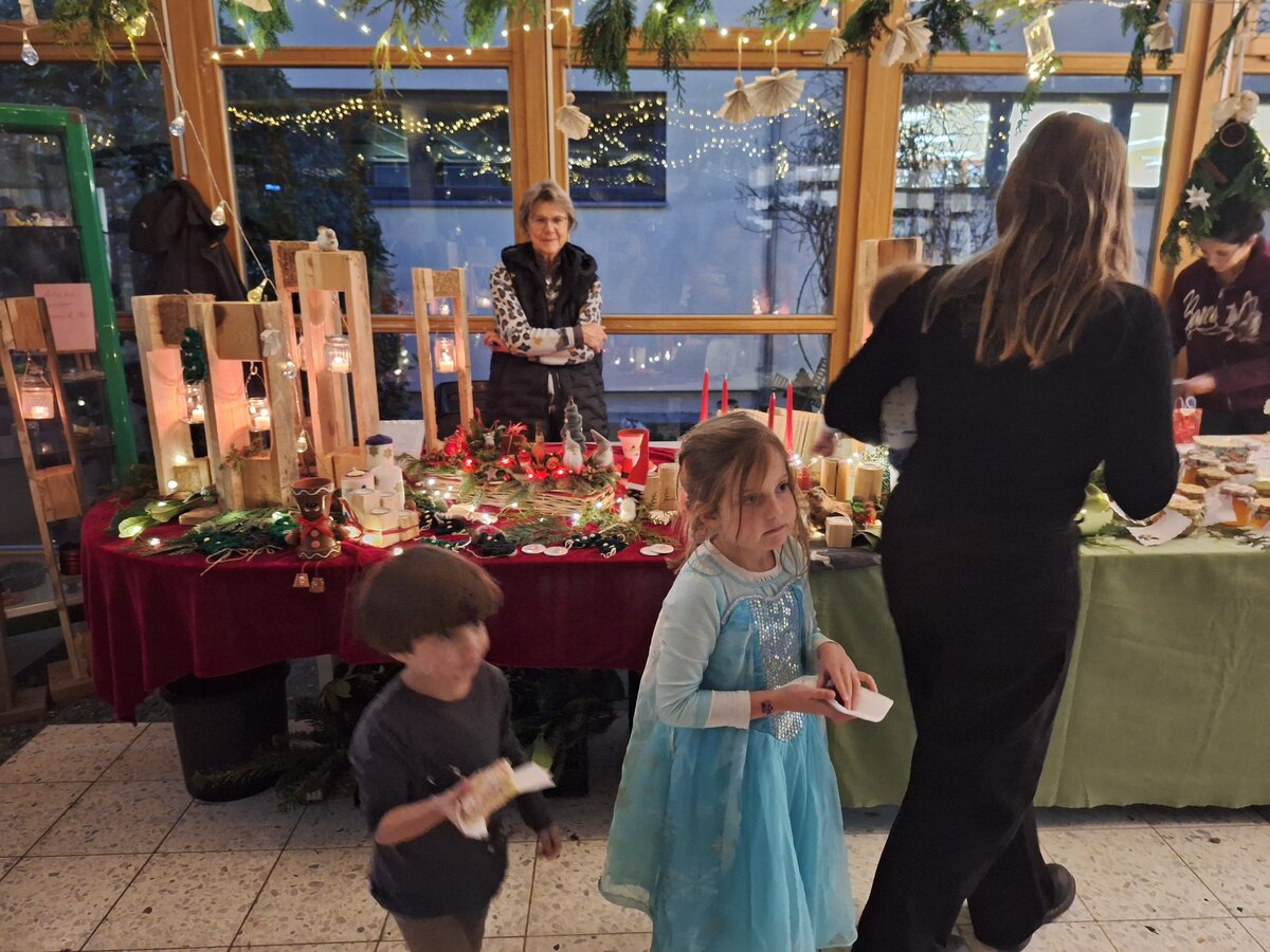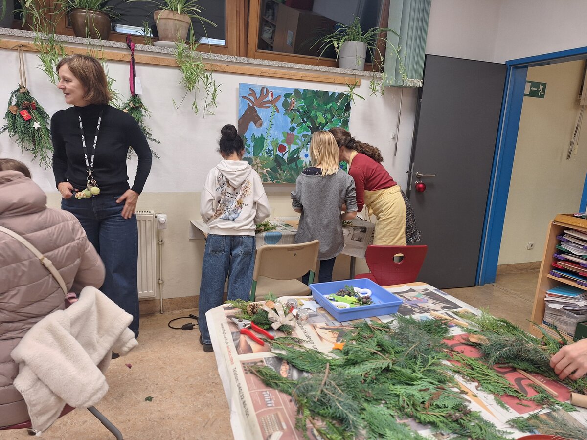 Parallel dazu konnten Kinder, Eltern und Lehrkräfte beim Adventsbasteln zusammen kreativ werden, weihnachtliche Dekorationen gestalten und die Vorfreude auf die Adventszeit genießen.