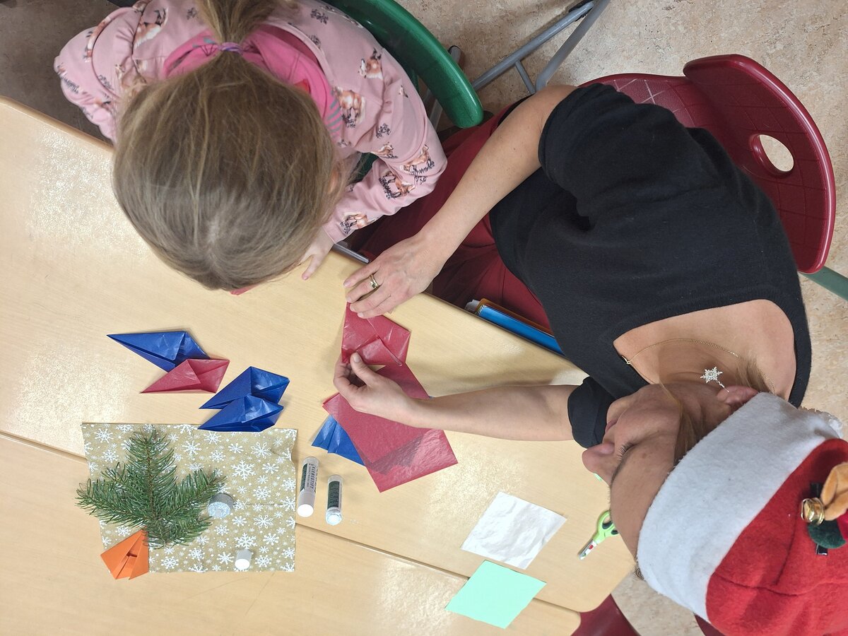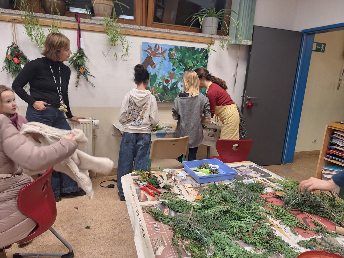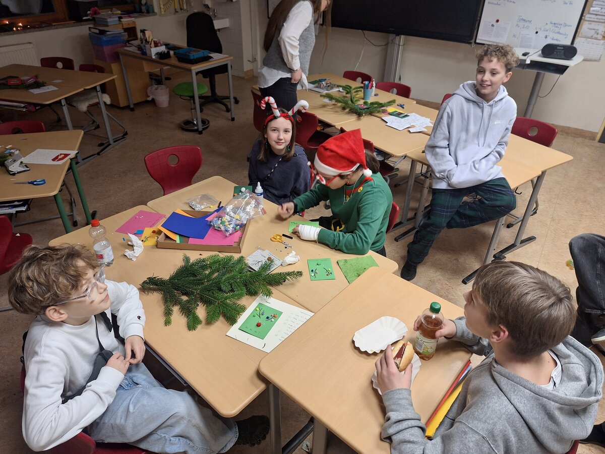 Parallel dazu konnten Kinder, Eltern und Lehrkräfte beim Adventsbasteln zusammen kreativ werden, weihnachtliche Dekorationen gestalten und die Vorfreude auf die Adventszeit genießen.