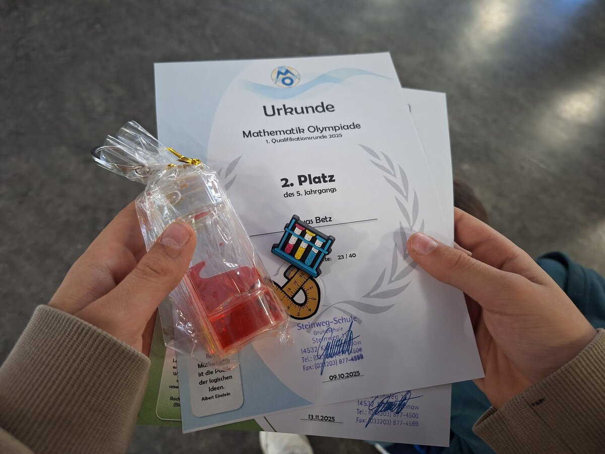 Wir gratulieren allen Teilnehmerinnen und Teilnehmern herzlich zu ihren großartigen Leistungen und danken ihnen für ihren Einsatz. Mit solchem Engagement und solcher Begeisterung für das Fach Mathematik blicken wir schon jetzt gespannt auf die Mathematik-Olympiade 2026 – sicherlich wieder ein Höhepunkt voller kluger Köpfe und kreativer Lösungen an der Steinweg-Schule!