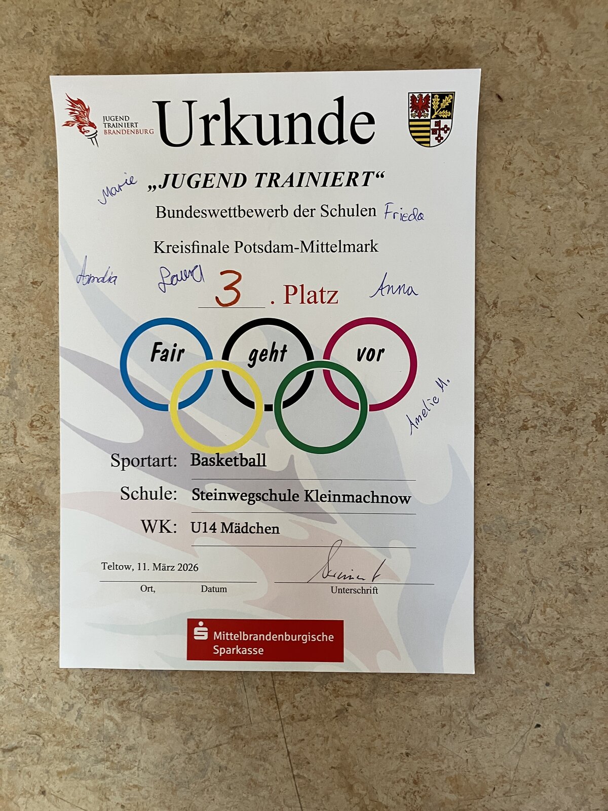 Am 11. März 2026 nahmen unsere Schülerinnen und Schüler am Jugend trainiert für Olympia Basketball-Turnier in Teltow teil und erlebten einen spannenden und sportlich intensiven Wettkampftag.